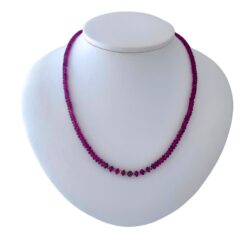 Die traumhafte Halskette besteht aus 3,2 bis 4,6 mm großen facettierten Turmalin pink Rondellen in exzellenter AA-Qualität und 10 mattierten Perlen in 925-Silber. Den Abschluss bilden eine Herzchließe und 4 Silberperlen – alle in 925-Silber.